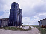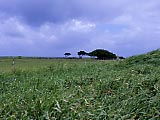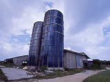 | 電柱にはちゃんと「パナリ」の文字がある。 | 道が行き止まりになるところに牧場があり、サイロが立っている。 桟橋から歩いて約20分。 |