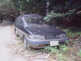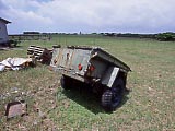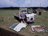 | 牧舎の近くにて。 | う〜ん、長い時間をかけて自然に還っているって感じですな。 | 桟橋の近くにナンバー付きの車が捨ててあった。 車内の物から持ち主が分かるゾー。持ち主さん、ちゃんと片しましょう |