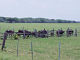 車のお陰で、徒歩ではとても入れないようなバラ線の柵の中や牛の近くまで行けた。 牛が勝手に移動しないように、車が通るたびに柵を開け閉めする。区切って飼育している牛が混ざると困るそうだ。 |