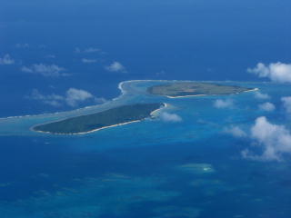 左が下地島、右が上地島。 石垣発波照間行きRAC771便から。 |