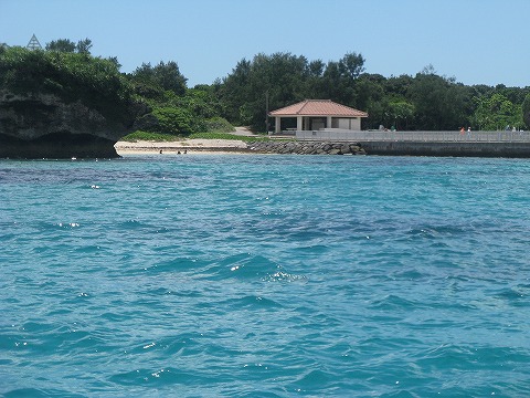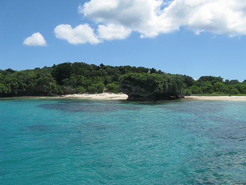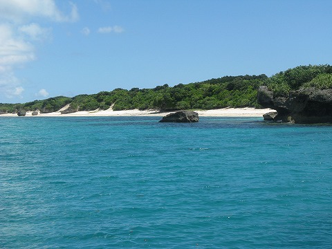 ビーチから上地島を望む。 上地島へも是非行ってみたい。 |