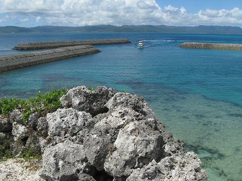 ヨナラ水道経由で1時間。 下地島の小さな桟橋に着く。 |