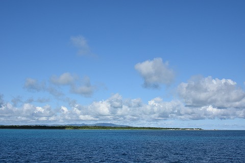 石垣港出航から約2時間で波照間島が近付いてきた。 正確には船が島に近付いているんだが、まいっか。 |