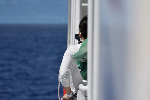 | アクションカメラを持った女の子が 時折船から身を乗り出して撮影していた。 海に落ちるなよ〜。 |