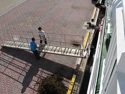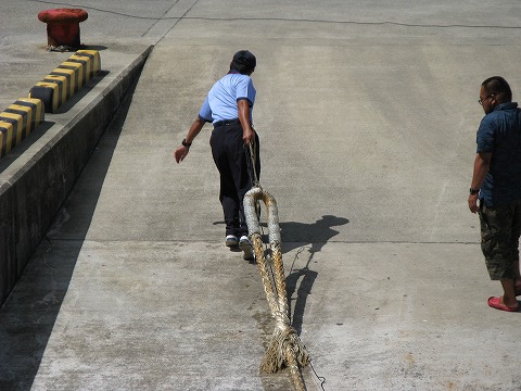 | 係留ロープに繋がったサンドレッドを投げる。 ※動画で撮ればよかった…。 |
