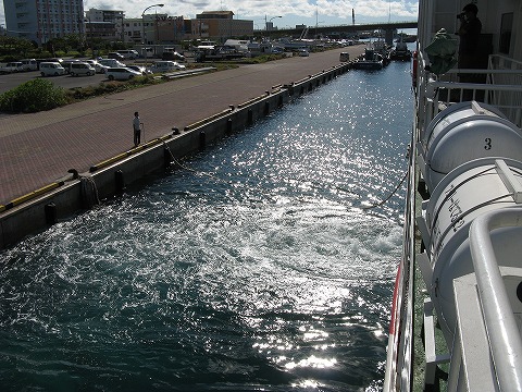 | 午後は漁港から。 高速船やフェリーが発着する港の隣にある。 ここで水揚げされた魚が、夕方になったらまちぐゎに並ぶんだね。 |