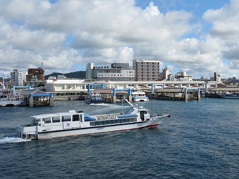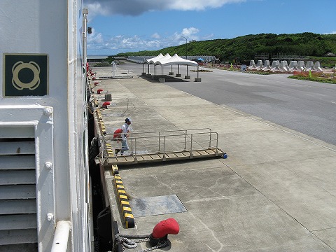 | 石垣島からの最初の高速船が着く頃にレンタカーを返し、 船客ターミナルでチケット買う。 |