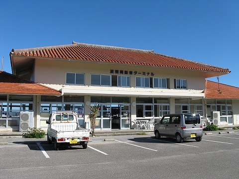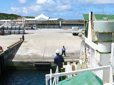 昨日はレンタカーにありつけなかったので 今日こそは借りたいのだが、 俺が目星を付けた港近くの店は予約を受けていない。 そこで、石垣島からの朝の1便が到着する前に店に行って借りようと、 歩いて10分ほどの港に向かう。 |