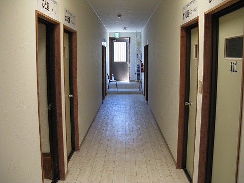 | 廊下の両側に各部屋がある。 なんとなく北大東島の「二六荘」の新館を思い出させる。 |
