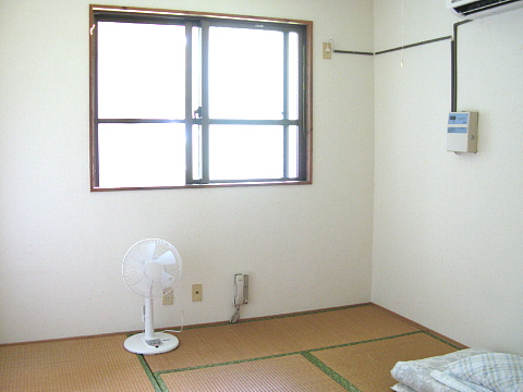 106号室の「わし座」。 各部屋には部屋番号の他に星座名が付けられている。 6畳で、TVなし、テーブルなし、ティッシュなし、 タオル類なし、蚊取りなし、エアコンは有料、 で、素泊4,000円ナリ。 |
