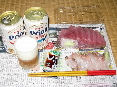 | 無事にマグロ(なにマグロかは知らない。)と イラブチャーの刺身を確保してきた。 刺身は冷蔵庫に入れずにレジ横に平積みにしていたんだけど、 大丈夫なのかね。 すぐに捌けてしまうことが分かっててそうするんだろうけどさ。 他のお買い物もしたので、それぞれの値段は知らない。 レシートくれなかったし。 1パックが結構な量。 さて、いざ実食してみると…、 マグロは内地で食すのとさして変わらなかった。 特にマグロ好きというわけではではない俺にとっては、 せめて産地ならではのもっと歯ごたえのある肉質を 期待していただけに残念。 イラブチャーはシコシコと歯ごたえがあり、こちらはまーさん。 どーでもいーけど、しょうゆは俺が出張や旅用に いつも持って歩いているもの(笑)。 このあと、単調な醤油味にちょっと飽きてきたので、 羽田で買ったお弁当に付いていたタルタルソースに変えたら またイケるのでした。 |