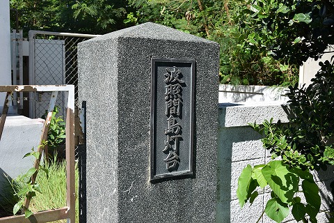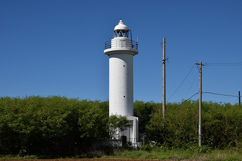 | 波照間島灯台の門柱。 | 波照間島灯台。 バックの青空に映える。 |