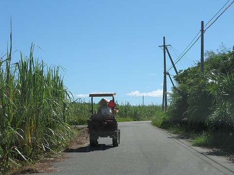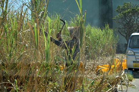 | サトウキビを手作業で収穫していた。 ハーベスターが壊れたのかな。 暑いのでクルマの中から撮影。 |