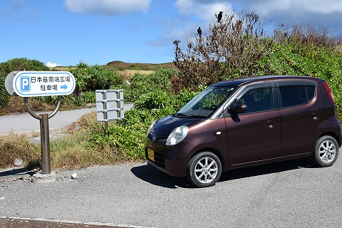| 今回お世話になったのは「レンタカーオーシャンズ」。 幸い写真左に写っている軽を借りられた。 24hで7,700円。 この軽の奥にも数台の車が控えていた。 |