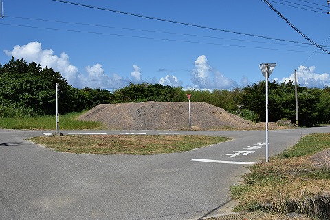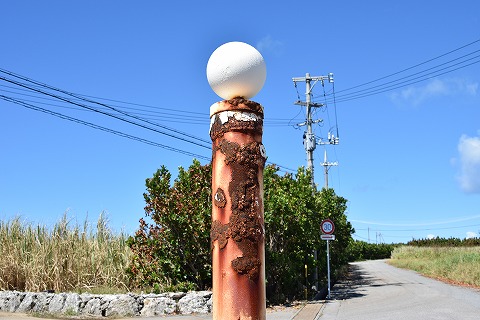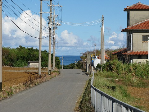 | 魔の三角地帯(笑)。 止まれの標識も3か所にある。 こういう風景は北大東島でも見たな〜。 |