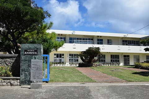 | 波照間中学校。 →の写真と同じ建物。 入口の左右に銘板があり、左が中学校で右が小学校。 |