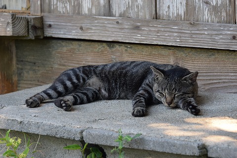 空き家の玄関前でまどろんでいたどらねこ。 | ||||