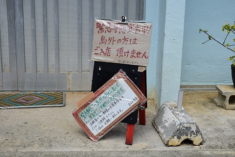 | 島内に数店あるまちぐゎの1軒は、 島外者の入店を不可にしていた。 店主(権利者?)が敏感なのかもしれないけど、 ちょっと神経質すぎるような気がするなぁ。 |