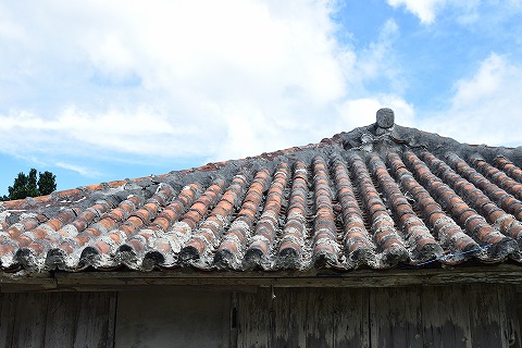 赤瓦の家もある。 この家にはシーサーが乗っていないが、 乗っている家もある。 |