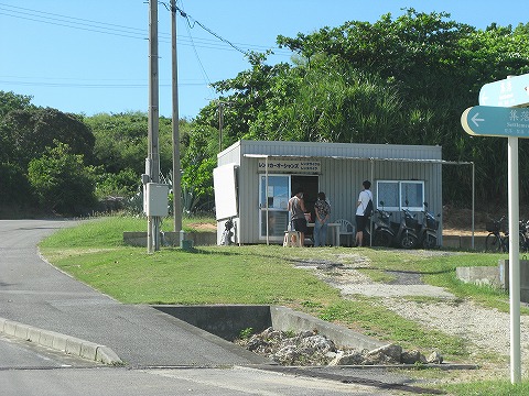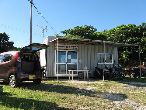 | 高速船からは客が結構降りてきて、レンタカー屋に群がっていた。 写真はその群れが一段落した頃に撮影。 この店は、レンタカー以外にチャリやバイクも貸しているが、 ほとんどがきれいになくなった。 俺はクルマを早めに借りといてよかった〜。 |