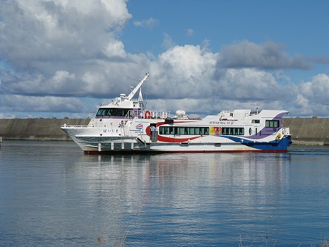 軽を借りて港に来てみたところに、 石垣島からの高速船がちょうど到着した。 |
