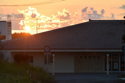 波照間空港での日の出。 画としては弱いので、すぐにクルマで移動した。 |