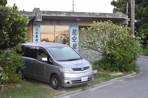 撮影が終わり「星空荘」に戻ってきた。 写真左は宿併設の食堂(2021/09現在、臨時休業中)。 1番右のクルマ(俺のレンタカー)の向こうの建物が宿泊棟。 なお、クルマを停めているスペースは宿の駐車場ではない。 まあ、テキトーに停めている、とそゆこと。 |