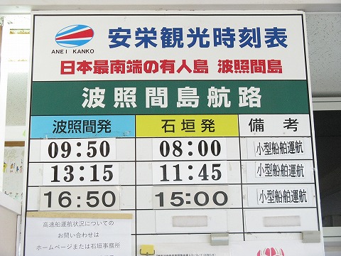 船客ターミナル内の安栄観光のきっぷうりばにあった時刻表。 | ||||