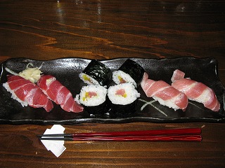 ガマンにガマンをして、 18時を過ぎたら呑みに出る。 まずは、「すし太郎」で軽く一杯。 石垣島産本マグロセット。 左から中トロ、鉄火、大トロ。 鉄火は、もうちょっと赤身を使って 身の部分を太くしてほしかった。 鮨屋の鉄火なんだからさ。 でも、どれもま〜さんど〜。 1,000円。 |
