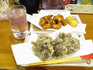 ソーセージや揚げ物。 なんの揚げ物だったかは 酔っ払っていて憶えてない…。 |