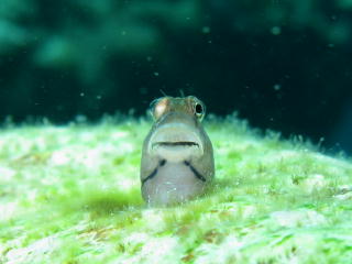 エンマゴチ | サンゴの穴から ぴょこんと顔を出した イシガキカエルウオ。 も〜俺は、この1本は、 この1匹で充分だな〜(笑)。 ずっと写真を撮り続けていたい〜〜〜。 |