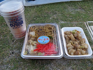 | 食糧を調達してきた。 やいま牛(石垣牛じゃないよ。)入りの 焼きそばと、石垣牛のモツ。 既に4杯目に突入している(笑)。 |