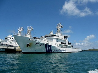 | さあ、ダイビングの最終日。 気持ちよく晴れた。 石垣港には、今日もたくさんの 海保の巡視船が停泊している。 いしがき |