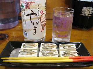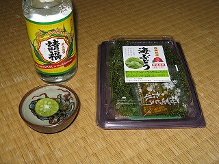 豆腐チャンプルー | いい気持ちになって宿に戻ってきて、 またダラダラと呑み助(笑)。 シークヮーサーは「ユーグレナモール」の お土産屋の店頭に「ご自由にどうぞ」 と、置いてあったヤツをいただいてきた。 明日からまた潜るゾ〜。 |