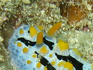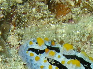 | カノコキセワタの一種。 | ソライロイボウミウシ | ←の写真を撮ったすぐ後に 触角がにょきっと伸びてきた。 ウミウシの触角って でんでん虫みたいだね。 |