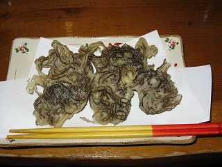モズク天。 少しぬるっとしていて、 独特の食感がある。 次回からはマース持参がいいと思う。 |