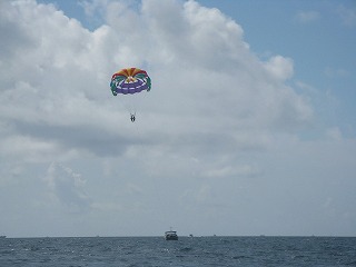 ダイビングポイントを移動する間に、 パラセーリングの船と行き合った。 |