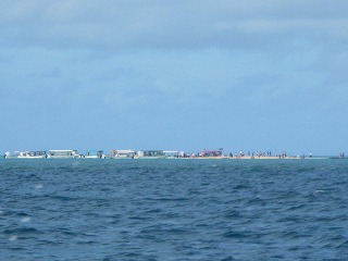 「幻の島」と宣伝されているバラス島 (干潮時のみ現れるサンゴの堆積地。)は、 観光地みたいになっている。 今日は新月の大潮だし、 しかもちょうど干潮時なので いつもより島の面積は広く現れてる んだろうけど それにしても船も人も多いな〜。 船の往来で事故が起きないか心配だ。 ここは、他に誰もいないときに独り占め するのが、ホントは気持ちいいんだよ。 島で写真を撮ると 「なんとか映え」するしね。 |