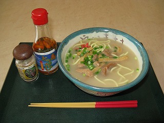 | さあ、ナツのやいまの最終日。 朝イチに郵便局でゆうパックで 生活物資などを発送してから、 空港バスで石垣空港に出た。 普段は、空港では値段が高いから メシを喰わないが、 石垣空港に入っている「やいま村」は それほど高くなかったので、 「内地へ行って来ます」の一杯をすする。 これが意外と(失礼)旨かったんだね。 八重山そば600円ナリ。 |