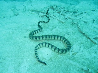 | 1本目は竹富温泉に行くゾ。 ウミヘビくんもあったかいとこが 好きなのかな。 |