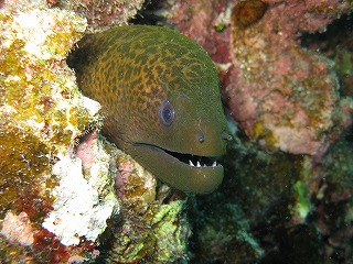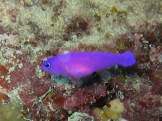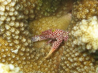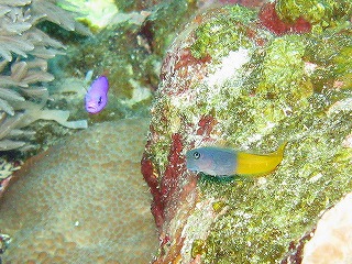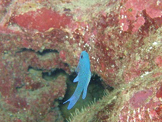 セマルハコガメの甲羅みたいなサンゴ。 | 俺の大好きなクレナイニセスズメ。 ホントきれいだよ。 でも、ネーミングがかわいそう。 「ニセ」なんて付けなくても、 もっときれいなイメージの名前が 考えられるでしょうに。 …俺はうまく考えられないけど。 |