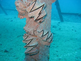 | 支柱にトサカガキが同化している。 毎回思うがどうしてこんな凶暴な口の デザインになるかね〜。 |