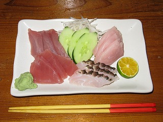 近海魚のお刺身。 860円ナリ。 脂系のアトに刺身かいっ! っと「喰う順番」にウルサい方面の方から ツッコミが入りそうだが、俺は気にしない。 好きなモンを好きなように喰えばいいのだよ。 |