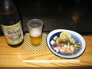 今度はオリオンの中瓶にする。 ツマミはタコマヨ。 |