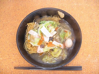 昼メシのあんかけかたやきそば。 カセットコンロを使って、 ボート上でアツアツのお昼がいただけるのだ。 |
