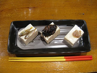 | 初めて頼んだ、塩辛3種盛。 410円ナリ。 これがまたいけた。 |