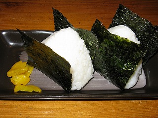 〆はおむすび。 320円ナリ。 あんだんすー(油味噌)が具に入ってて、 ま〜さんよ〜。 |