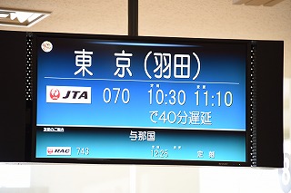 | さあ、楽しかったやいまもいよいよ最終日。 わざわざタクシーで八重山郵便局へ行って ゆうパックを発送(宿のおばちゃんに 集荷対応の手間をかけさせたくなかったので 持ち込みにした。)し、 空港バスで空港に出た。 そしたら、JTA070便は出発が40分ほど 遅れる見込みとのこと。 |