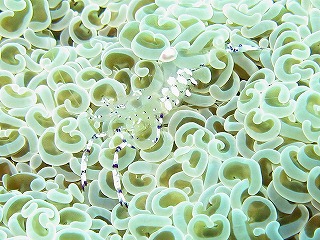 ドクウツボ | ニセアカホシカクレエビ。 透明なので分かりにくいよね。 |