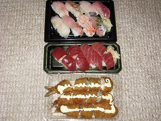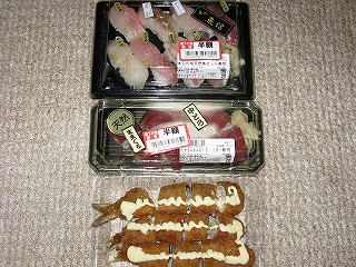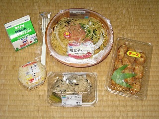 パスタとチャーハンおむすびは喰って、 他はちょっとつまむだけにして、 夜に取っておく。 |